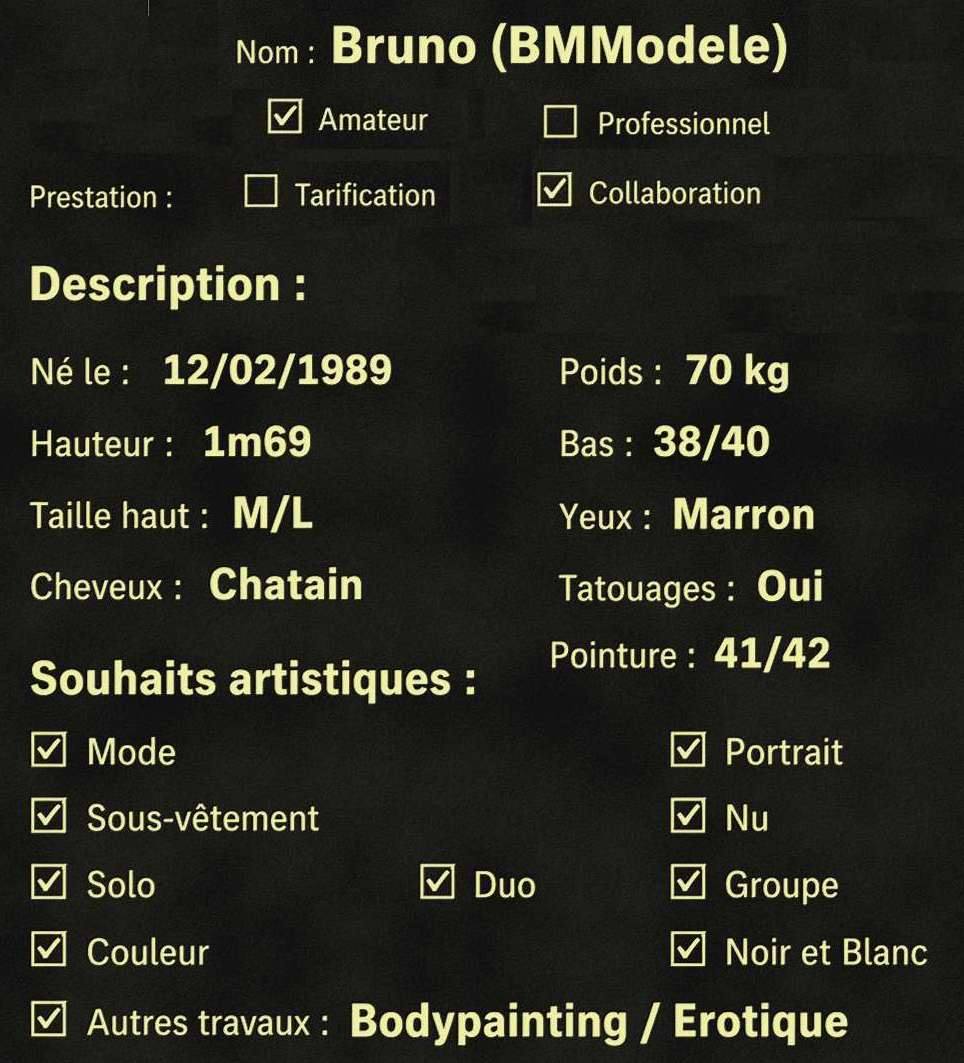 Je m’appelle Bruno et je réside à Vitry-sur-Seine (94). Bienvenue dans mes différents univers en tant que photographe et modèle amateur.